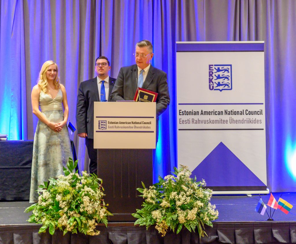 Members and supporters of the Estonian, Latvian and Lithuanian communities of the United States gathered in Washington DC on November 9 for the 2019 Awards Gala, hosted by the Estonian American National Council. Awards were presented by both the EANC and the Joint Baltic American National Committee to honor exceptional individuals and organizations for their exceptional and longtime service to their Estonian-American and Baltic-American communities. The three Baltic nations have shared a great deal in their histories and have celebrated many shared anniversaries in recent months and years, a recognition touched upon in the welcome speech by EANC president Marju Rink-Abel. EANC is proud to have shared the stage with JBANC on this special evening. So many recent anniversaries, some joyful, some more somber, are shared by Estonia, Latvia, and Lithuania, that it seemed only right to celebrate this years´s awardees all together as a Baltic community, with a view toward the future and what our communities can continue to share and achieve through collaboration.