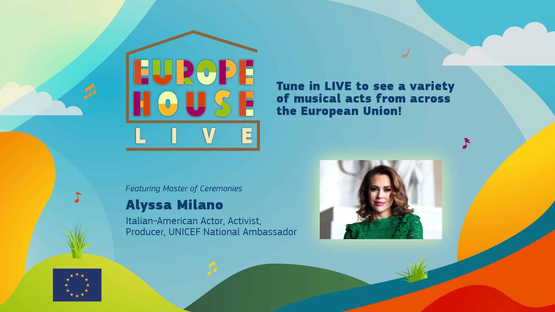Program: Join EU Ambassador to the U.S. Stavros Lambrinidis as he kicks off the festivities on Saturday, May 8th at 5 PM ET. Then, meet our artists as we dial in to country after country, accompanied by our famous Master of Ceremonies, actor Alyssa Milano! At 6 PM, cheer with us as we usher in Europe Day 2021 at midnight Central European Time!