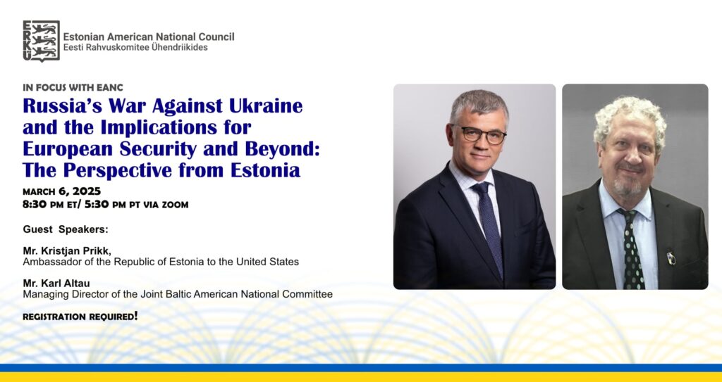 “A just peace can only be achieved through strength, adherence to international norms, the rule of law, and the involvement of Ukraine and our European allies in any negotiations. Nothing about Ukraine without Ukraine.” – Full EANC Statement on Ukraine available at https://estosite.org/eanc-ukraine-statement-feb-20-2025/
