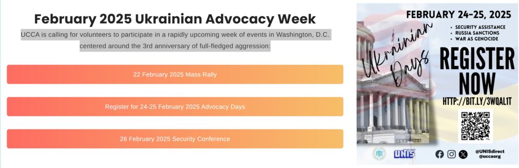 Mass Rally: The Ukrainian diaspora, together with the Ukrainian Embassy, supporters of Ukraine from the USA and around the world, will gather at the iconic Lincoln Memorial in Washington, D.C. for a mass rally, marking three years of russia’s genocidal full-scale war against Ukraine.
