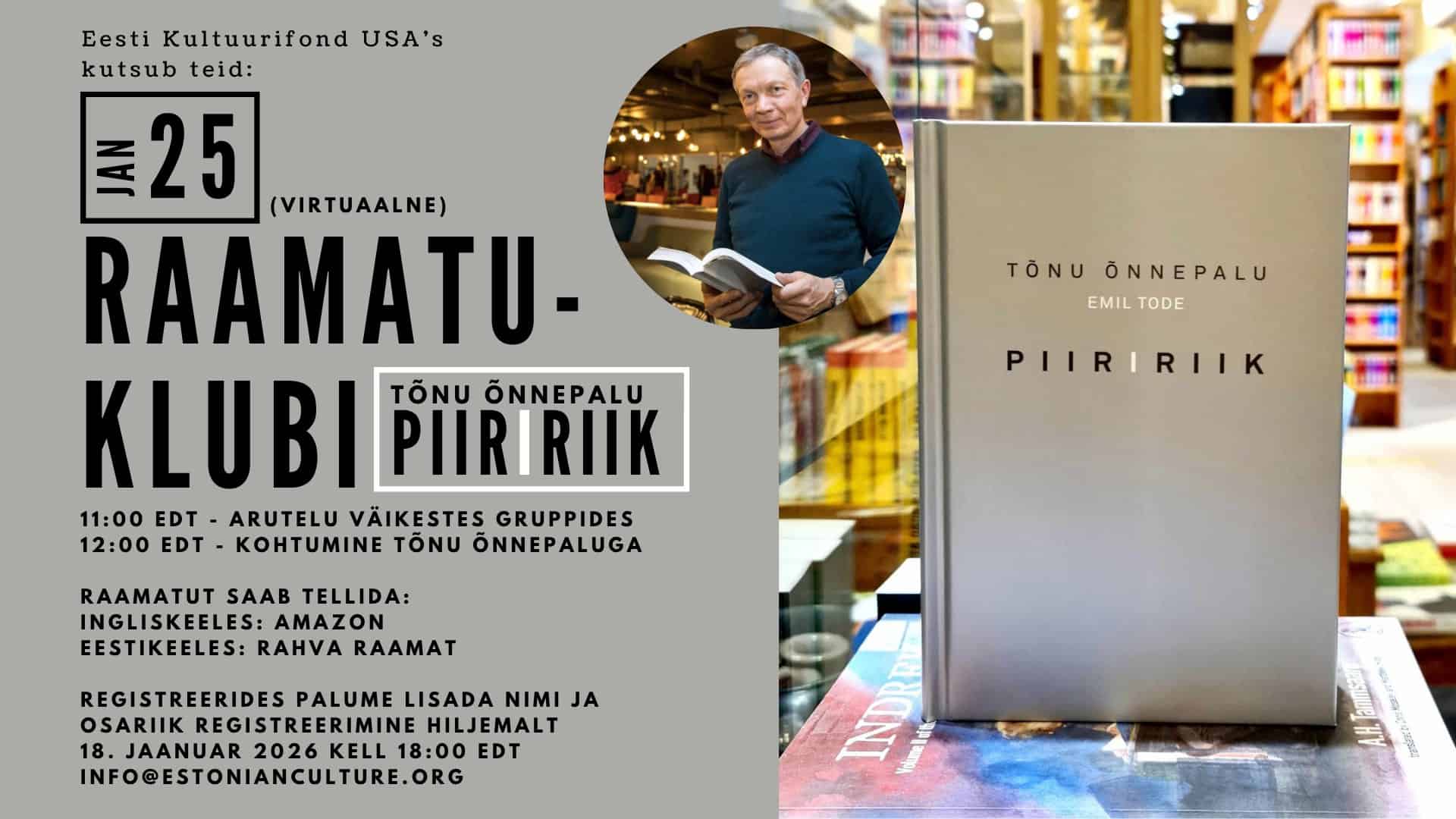 You are cordially invited to the annual book club hosted by the Foundation for Estonian Arts and Letters.11:00 EDT - discussion in small groups12:00 EDT - Q&A with Tõnu Õnnepalu led by Sirje Kiin Book […]